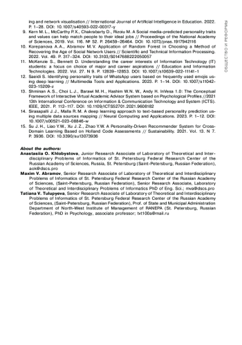 14. Sirasapalli J. J., Malla R. M. A deep learning approach to text-based personality prediction using multiple data sources mapping // Neural Computing and Applications. 2023. P. 1-12. DOI: 10.1007/s00521-023-08846-w EDN: QIGWKI