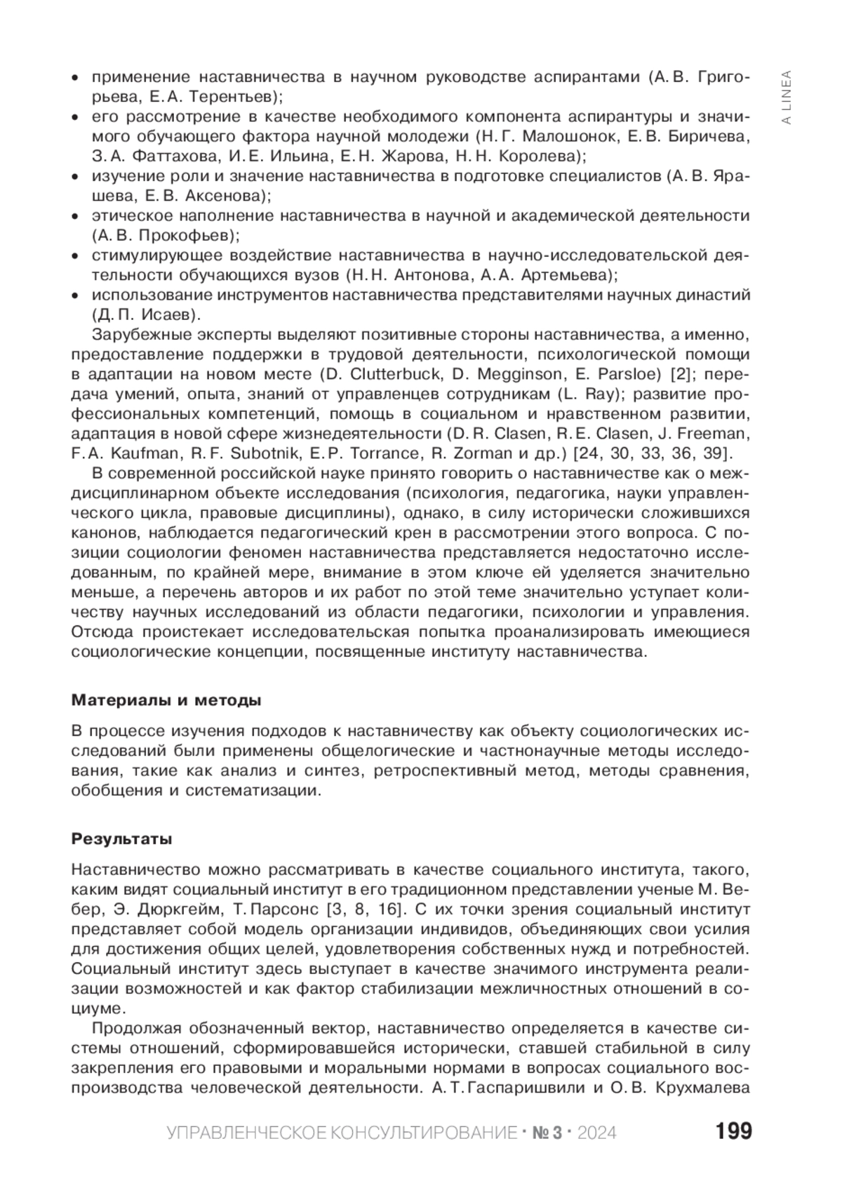 20. Сизоненко Р. В. Наставничество в промышленной сфере как управленческая практика и технология: концептуальный анализ // Вестник Пермского национального исследовательского политехнического университета. Социально-экономические науки. 2021. № 1. С. 69-82. EDN: VHYJCR