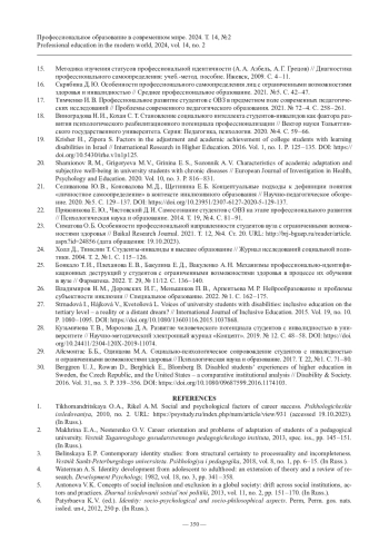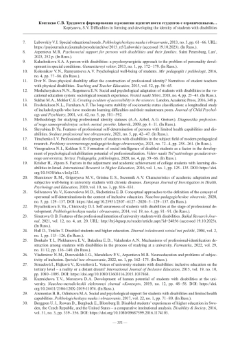 11. Dvir N. Does physical disability affect the construction of professional identity? Narratives of student teachers with physical disabilities // Teaching and Teacher Education. 2015. Vol. 52. Р. 56 - 65.