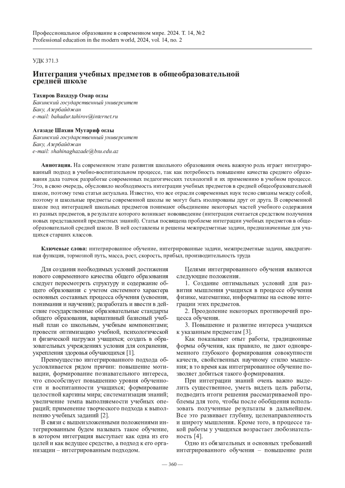 2. Тахиров Б. О. Организация учебно-исследовательской деятельности учащихся по математике через систему задач, реализующую межпредметные связи: Вестник МГОУ, серия Педагогика, 2017, № 4.