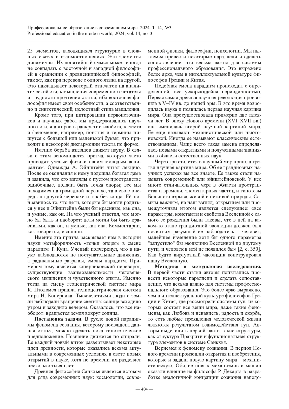 Результаты. Анализ удалось осуществить на малоизвестных в российской печати научных статьях и монографиях. Познание развивается по спирали. Через два с половиной тысячелетия от рождения гун появилась научная теория струн. Мы проводим некоторые аналогии между древнеиндийскими гунами и современной теорией струн. Обосновываем теорию сознания уже не квантовой теорией, а более глубокой теорией струн. Концепция сознания аргументируется в русле научной парадигмы Т. Куна. Ведущими являются идеи философа Д. Чалмерса и физика Дж. Уилера об информации.