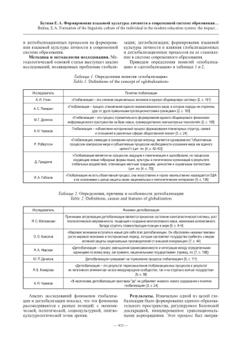 Методика и методология исследования. Методологической основой статьи выступает анализ исследований, посвященных проблемам глобализации; деглобализации; формирования языковой культуры личности и влияния глобализационных и деглобализационных процессов на ее становление в системе современного образования.
