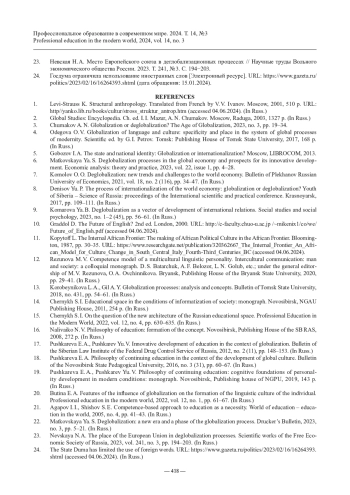 18. Пушкарева Е. А. Философия непрерывного образования в контексте развития глобальной культуры // Вестник Новосибирского государственного педагогического университета. 2016. № 3 (31). С. 60‒67.