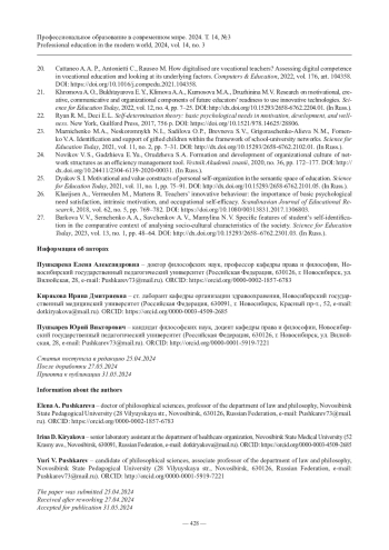 20. Cattaneo A. A. P., Antonietti C., Rauseo M. How digitalised are vocational teachers? Assessing digital competence in vocational education and looking at its underlying factors // Computers & Education. 2022. Vol. 176. Art. 104358. https://doi.org/https://doi.org/10.1016/j.compedu.2021.104358.