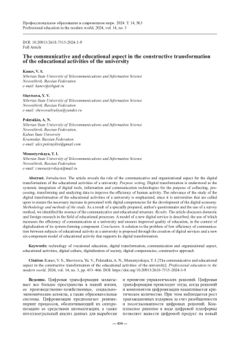 Введение. В статье раскрывается роль коммуникативно-организационного аспекта в цифровой трансформации образовательной деятельности вуза.