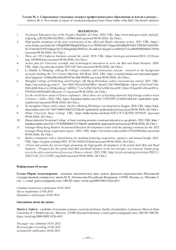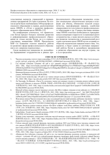 1. Чжунхуа жэньминь гунхэго чжие цзяоюйфа (中华人民共和国职业教育法). 2022. URL: http://www.moe.gov.cn/jyb_sjzl/sjzl_zcfg/zcfg_jyfl/202204/t20220421_620064.html (accessed 09.04.2024).