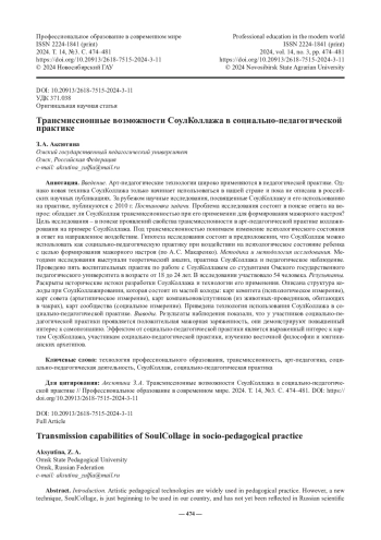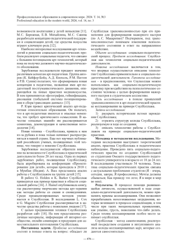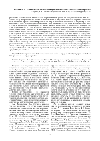 Введение. Арт-педагогические технологии широко применяются в педагогической практике. Однако новая техника СоулКоллажа только начинает использоваться в нашей стране и пока не описана в российских научных публикациях. За рубежом научные исследования, посвященные СоулКоллажу и его использованию на практике, публикуются с 2010 г.