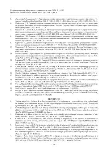 10. Христидис Т. В. Потенциал артпедагогики в гармонизации развития личности // Вестник Московского государственного университета культуры и искусств. 2019. № 6. С. 146-152. https://doi.org/https://doi.org/10.24411/1997-0803-2019-10619.