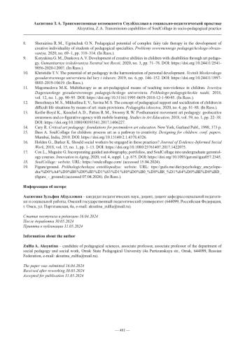 17. Cox L., Maguire G. Incorporating guided autobiography, portfolios, and SoulCollage into undergraduate gerontology courses // Innovation in Aging. 2020. Vol. 4, suppl. 1. P. 675. https://doi.org/10.1093/geroni/igaa057.2345.