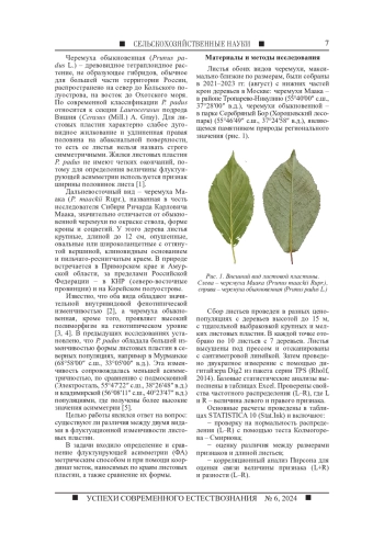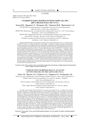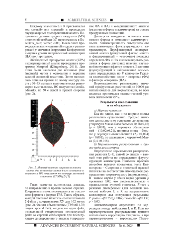 5. Baranov S., Zykov I., Prokopenko A., Fedorova L., Lipponen I. Data distribution and asymmetry in leaf blade Prunus padus L. E3S Web of Conferences // EDP Sciences. 2023. Vol. 420. P. 01001. DOI: 10.1051/e3sconf/202342001001 EDN: GCAGOT