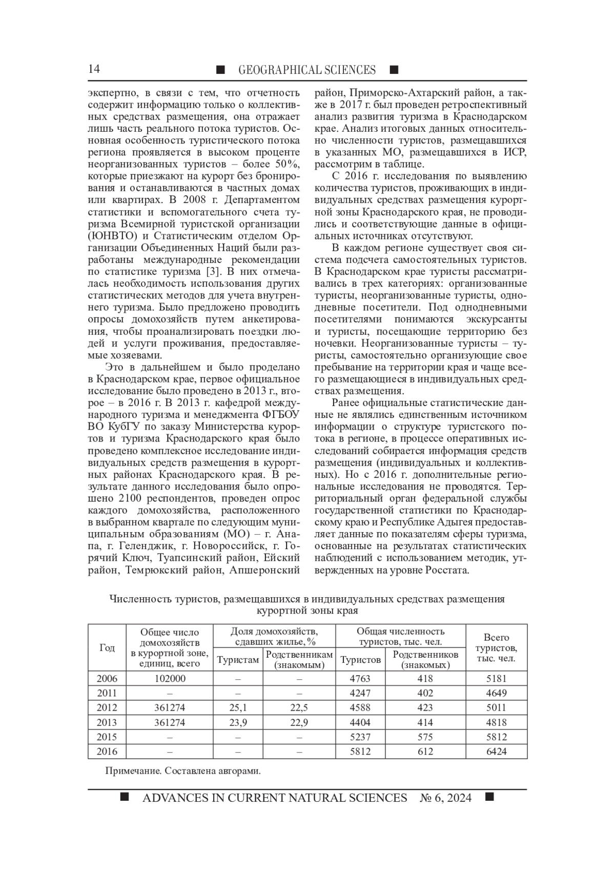 3. Салеева Т.В., Самойленко А.А. Совершенствование статистического учета в туризме как необходимое условие для объективного планирования социально-экономического развития региона (на примере Краснодарского края) // Курорты. Сервис. Туризм. 2018. № 2 (39). С. 30-36. EDN: YOVSMH