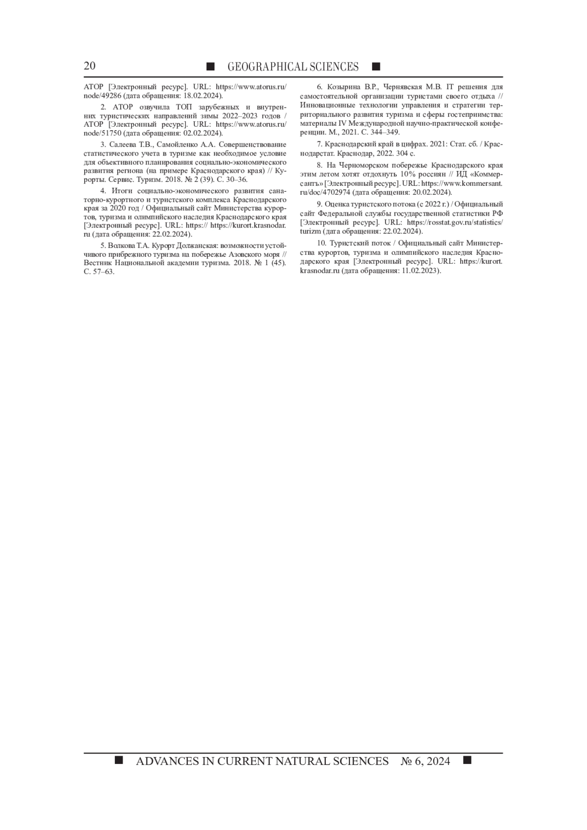 8. На Черноморском побережье Краснодарского края этим летом хотят отдохнуть 10 % россиян // ИД “Коммерсантъ” [Электронный ресурс]. URL: https://www.kommersant.ru/doc/4702974 (дата обращения: 20.02.2024).