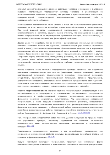 22. Рахимова, М.В. “Отражение театральности как философско-антропологического феномена в научном дискурсе” Социология, 2024. No. 10, pp. 172-177. DOI: 10.24412/1812-9226-2024-10-172-177