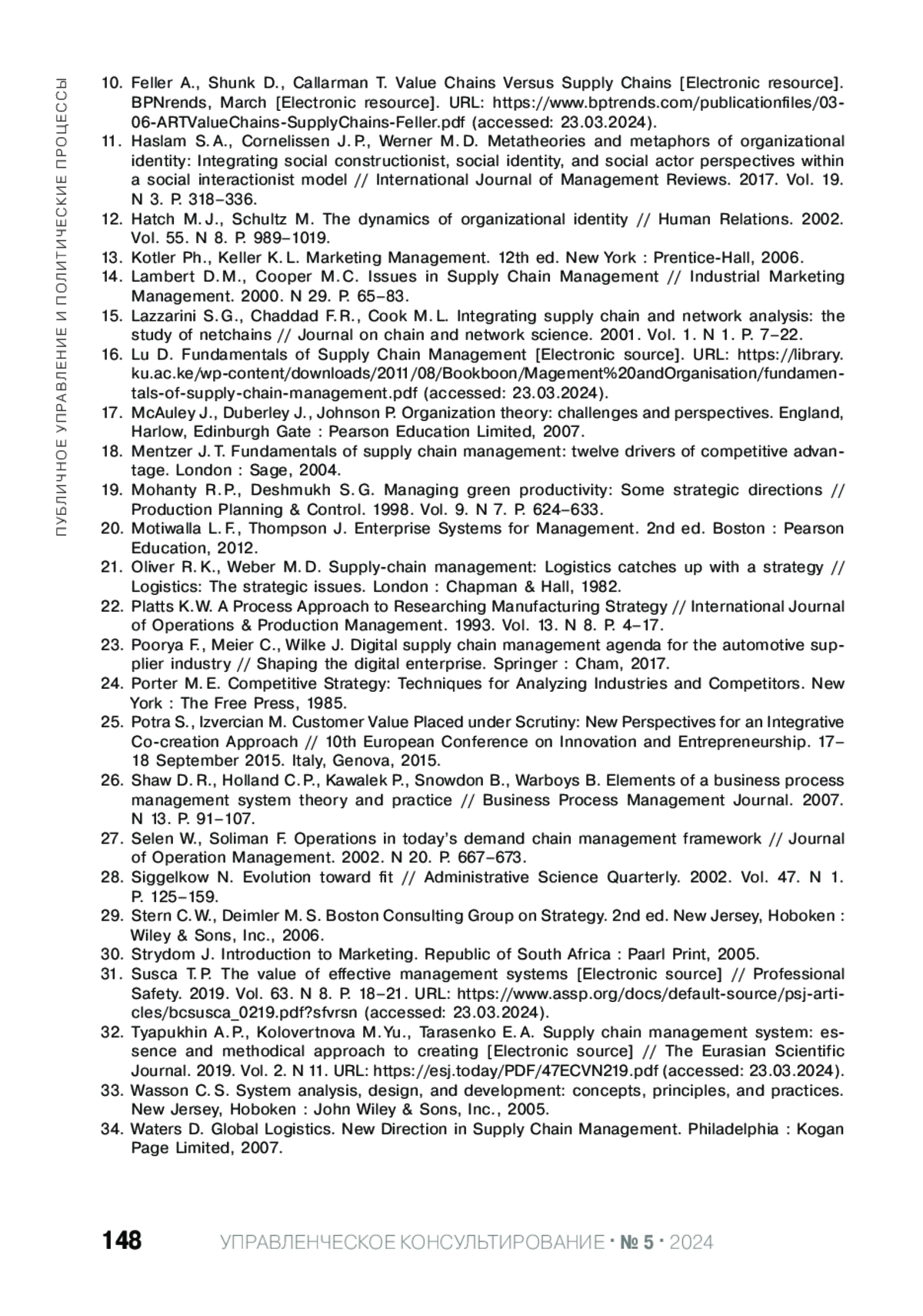 10. Feller A., Shunk D., Callarman T. Value Chains Versus Supply Chains. BPNrends, March. URL: https://www.bptrends.com/publicationfiles/03-06-ARTValueChains-SupplyChains-Feller.pdf (accessed: 23.03.2024).