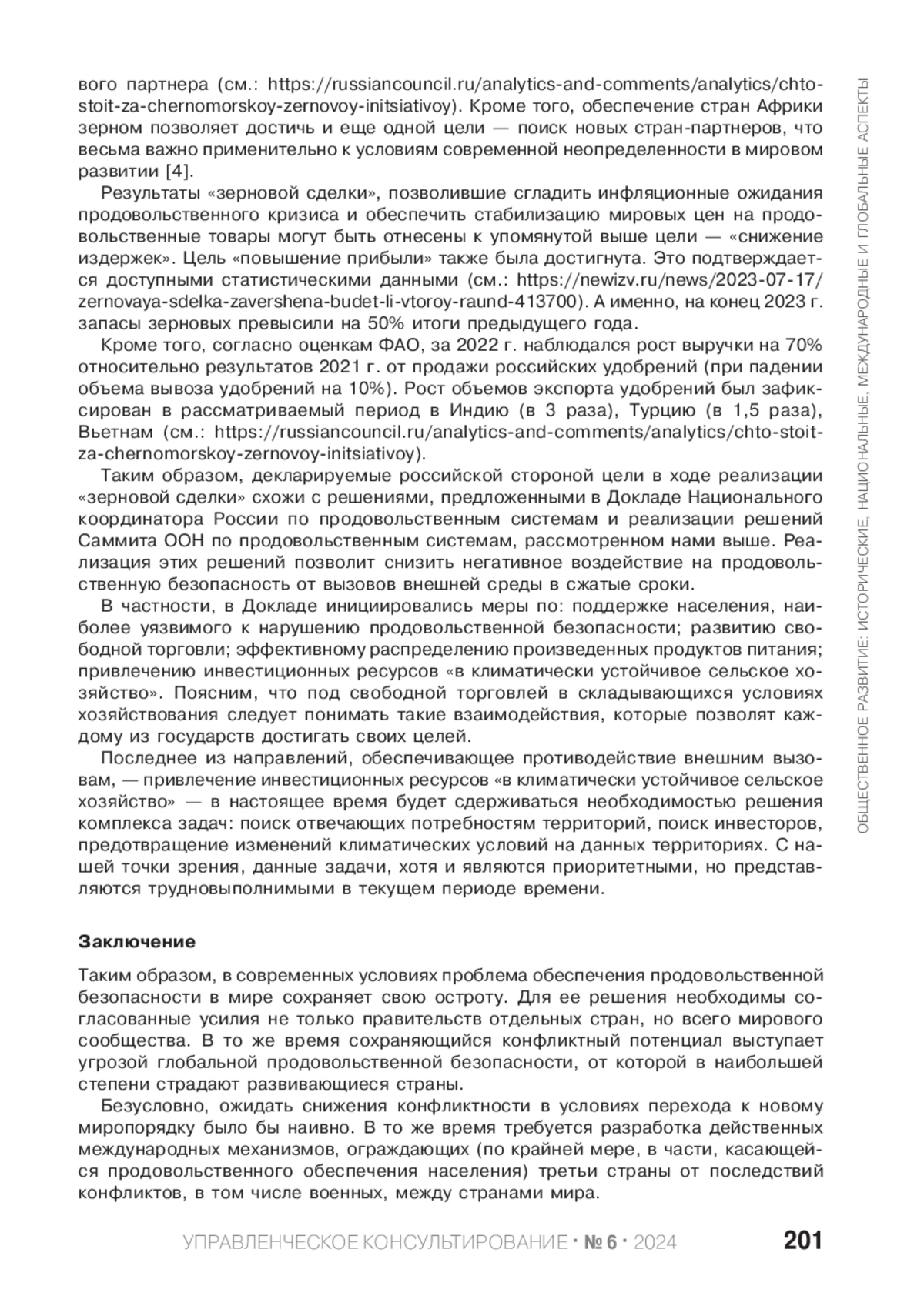 2. Бартенев В. Влияние санкционного давления на продовольственную безопасность: традиционные и новые измерения // Пути к миру и безопасности. 2022. № 2 (63). С. 11-37. EDN: CBOGWI