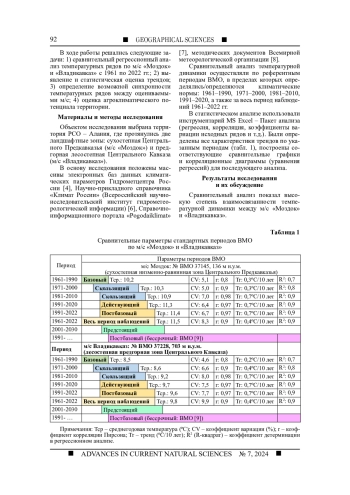 Статья: СРАВНИТЕЛЬНАЯ ДИНАМИКА ТЕМПЕРАТУР ЦЕНТРАЛЬНОГО КАВКАЗА И ПРЕДКАВКАЗЬЯ ПО ПЕРИОДАМ ВСЕМИРНОЙ МЕТЕОРОЛОГИЧЕСКОЙ ОРГАНИЗАЦИИ НА МЕТЕОСТАНЦИЯХ "МОЗДОК" И "ВЛАДИКАВКАЗ" (2024)
