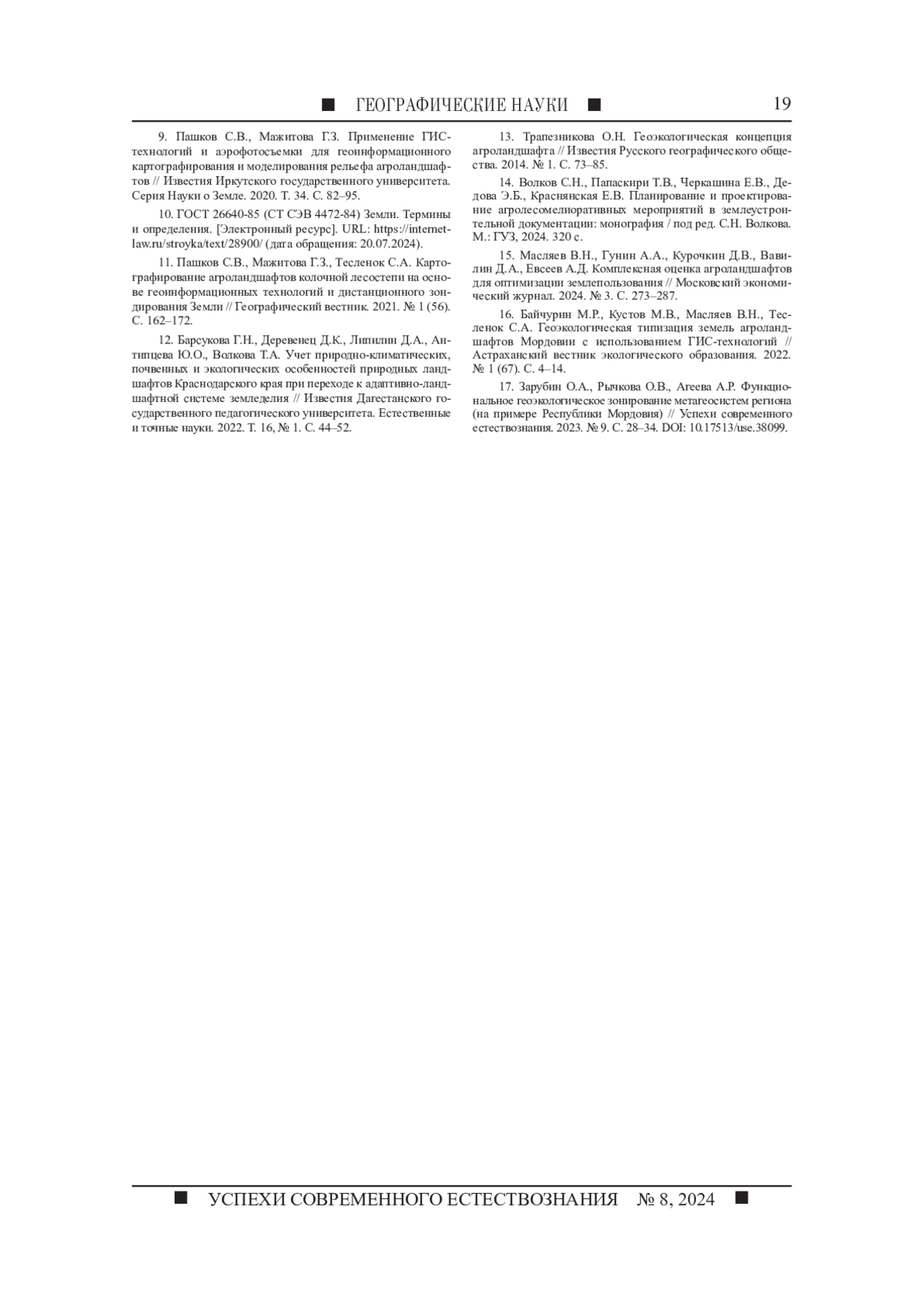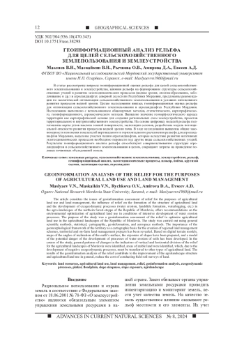 МАСЛЯЕВ В. Н., МАСКАЙКИН В. Н., РЫЧКОВА О. В., АМИРОВА Д. А., ЕВСЕЕВ А. Д. ГЕОИНФОРМАЦИОННЫЙ АНАЛИЗ РЕЛЬЕФА ДЛЯ ЦЕЛЕЙ СЕЛЬСКОХОЗЯЙСТВЕННОГО ЗЕМЛЕПОЛЬЗОВАНИЯ И ЗЕМЛЕУСТРОЙСТВА // УСПЕХИ СОВРЕМЕННОГО ЕСТЕСТВОЗНАНИЯ. 2024. № 8