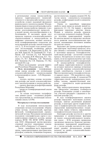 Статья: ГЕОИНФОРМАЦИОННЫЙ АНАЛИЗ РЕЛЬЕФА ДЛЯ ЦЕЛЕЙ СЕЛЬСКОХОЗЯЙСТВЕННОГО ЗЕМЛЕПОЛЬЗОВАНИЯ И ЗЕМЛЕУСТРОЙСТВА (2024)