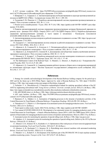 10. Ададуров А. С. Автоматизированная система контроля за работой специального подвижного состава // Бюллетень ОУС ОАО “РЖД”. 2016. № 6. С. 29-35.