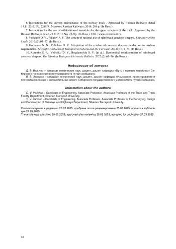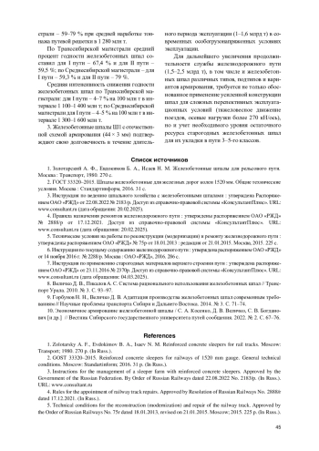 9. Горбунов Н. Н., Величко Д. В. Адаптация производства железобетонных шпал современным требованиям // Научные проблемы транспорта Сибири и Дальнего Востока. 2014. № 3. С. 71-74. EDN: THBXHH