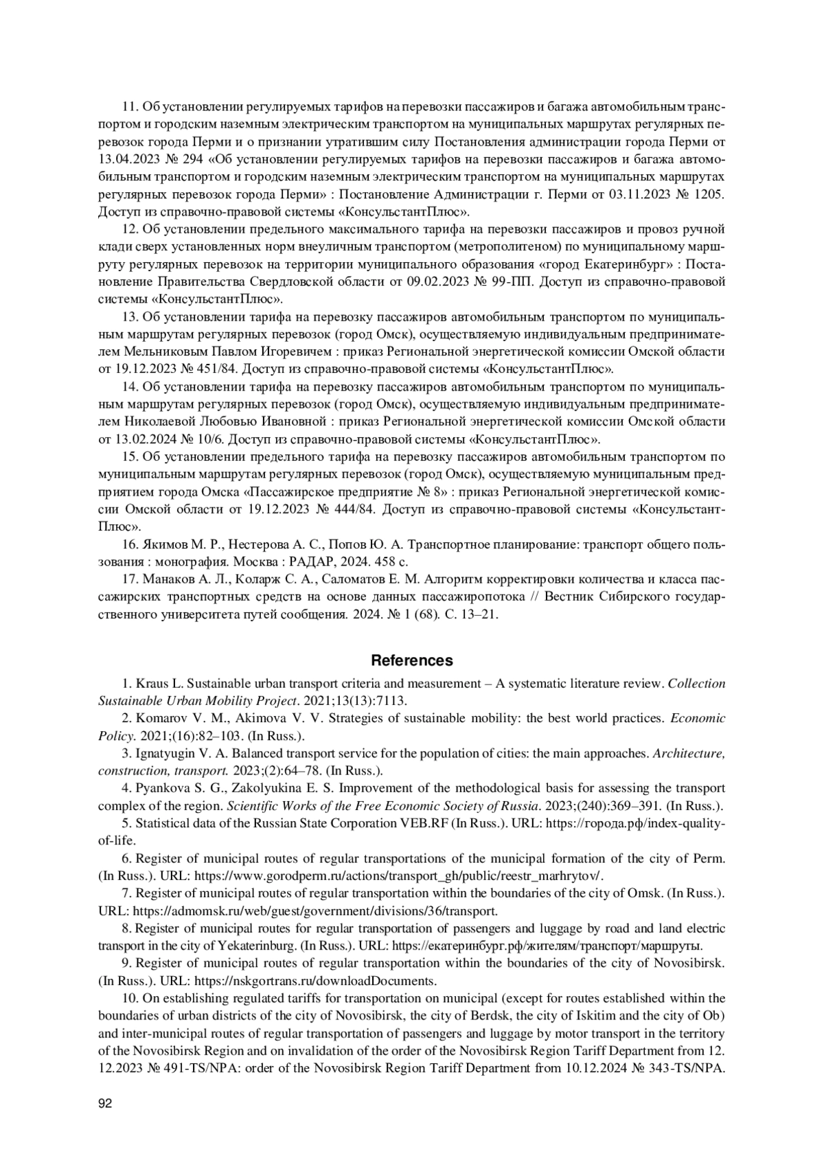 3. 	Игнатюгин В. А. Сбалансированность транспортного обслуживания населения городов: основные подходы // Архитектура, строительство, транспорт. 2023. № 2. С. 64-78. EDN: KTGWXC