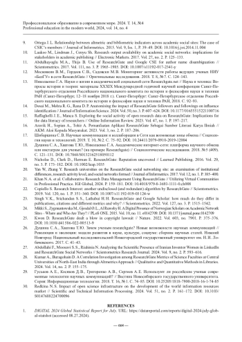 14. Desai M., Mehta R. G., Rana D. P. Anatomising the impact of ResearchGate followers and followings on influence identification // Journal of Information Science. 2024. Vol. 50, no. 3. P. 607-624. https://doi.org/10.1177/01655515221100716