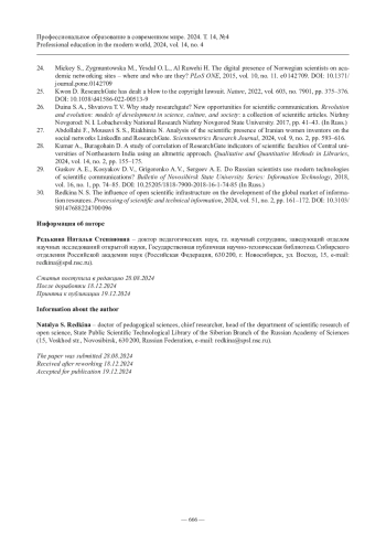 19. Nicholas D., Clark D., Herman E. ResearchGate: Reputation uncovered // Learned Publishing. 2016. Vol. 29, no. 3. P. 173-182. https://doi.org/10.1002/leap.1035