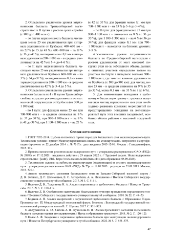 9. Колос А. Ф. Засорение и загрязнение щебеночного балласта при эксплуатации железнодорожного пути // Известия Петербургского университета путей сообщения. 2022. № 3. С. 558-575. EDN: SZPEJX
