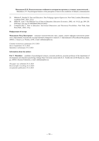 23. Mikulan P., Sinclair N. Time and Education. Time Pedagogy Against Oppression. New York; London: Bloomsbury Academic, 2023. 232 p.