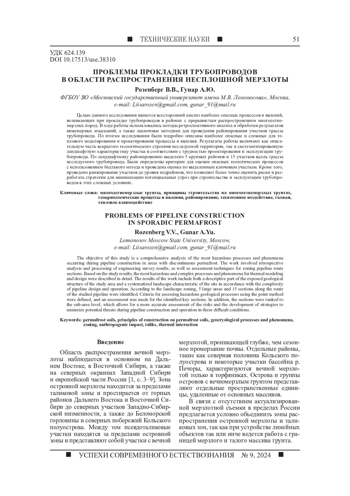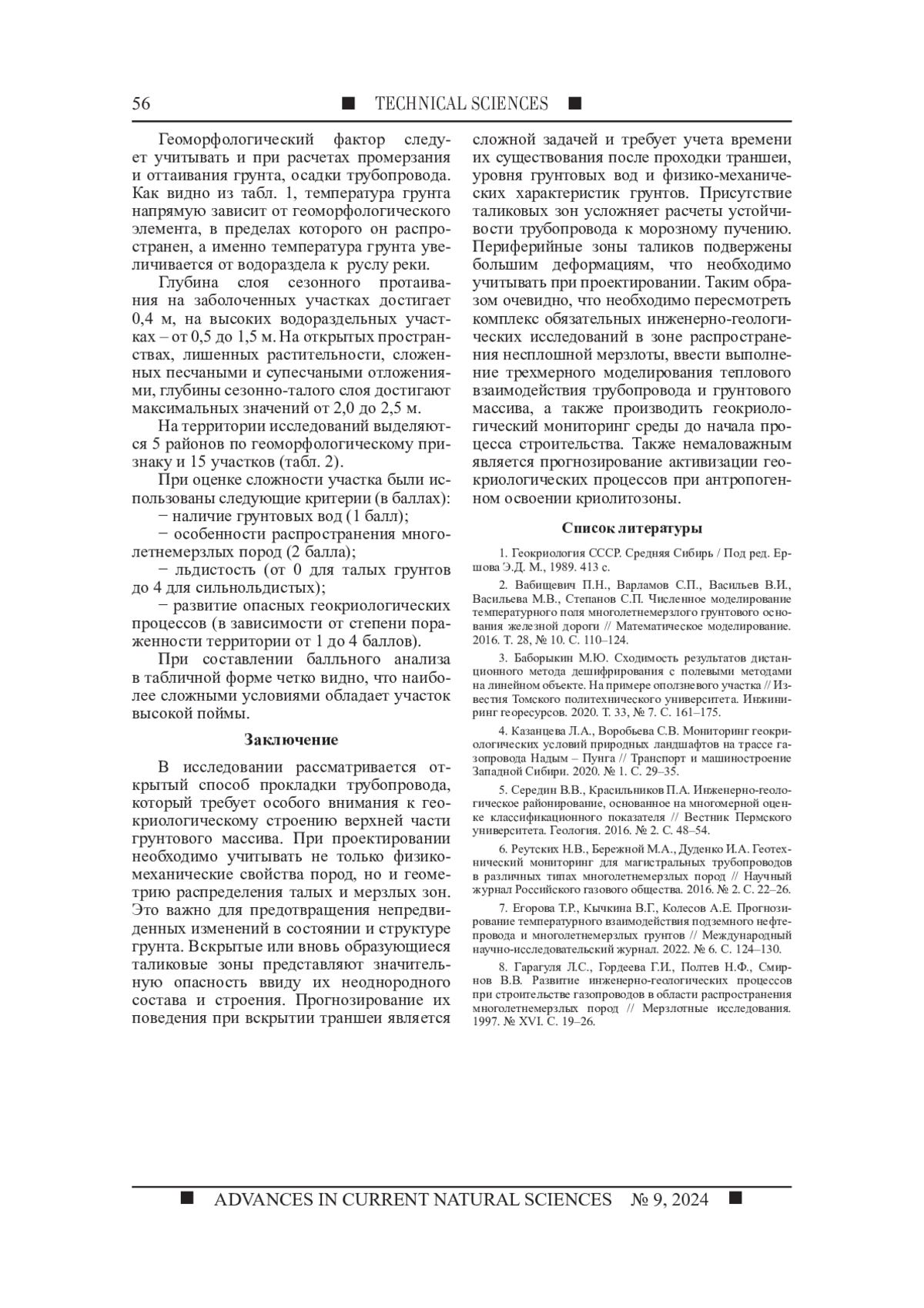 8. Гарагуля Л.С., Гордеева Г.И., Полтев Н.Ф., Смирнов В.В. Развитие инженерно-геологических процессов при строительстве газопроводов в области распространения многолетнемерзлых пород // Мерзлотные исследования. 1997. № XVI. С. 19-26.