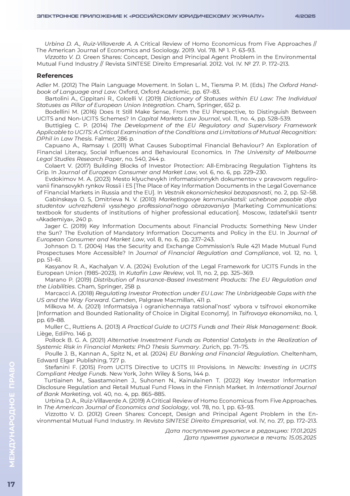 Касьянов Р. А., Качалян В. А. От проспекта эмиссии до ключевого информационного документа: транспарентность информации как базовый аспект защиты прав инвесторов в ЕС // Электронное приложение к «Российскому юридическому журналу». 2025. № 4. С. 6–17. DOI: https://doi.org/10.34076/22196838_2025_4_6.