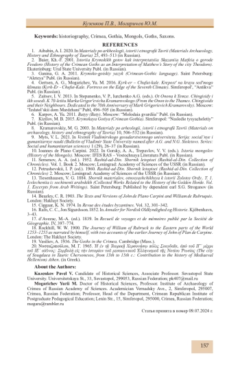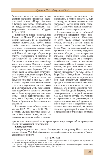 1. Айбабин А.И. О дате подчинения Готии татаро-монголам // Материалы по археологии, истории и этнографии Таврии. Вып. XXV. 2020. С. 493-513. EDN: FZVKCO
