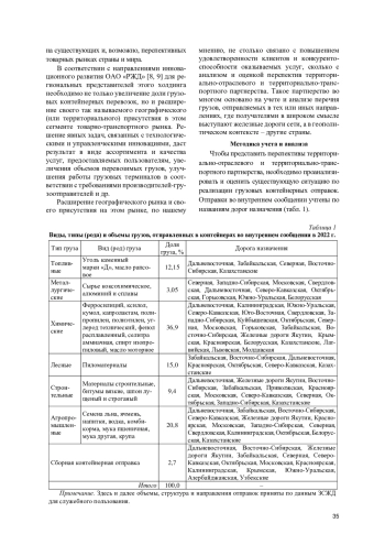 Перевозка грузов в контейнерах, с одной стороны, во многом отражает сущность современного этапа развития индустрии транспорта, с другой – товарные взаимоотношения между производителями и потребителями продукции, созданной в хозяйственных комплексах регионов страны. Организация перевозок грузов в контейнерах всецело зависит от деятельности региональных операторов – железных дорог сети, функционирующих на всех стадиях производственного процесса на железнодорожном транспорте. К ним относятся такие важные аспекты, как взаимодействие с участниками перевозки, знание товарных групп грузов, подвергающихся контейнерной перевозке, а также умение распоряжаться имеющимися материальными ресурсами. Именно эти параметры во многом определяют результативность железнодорожных контейнерных перевозок.