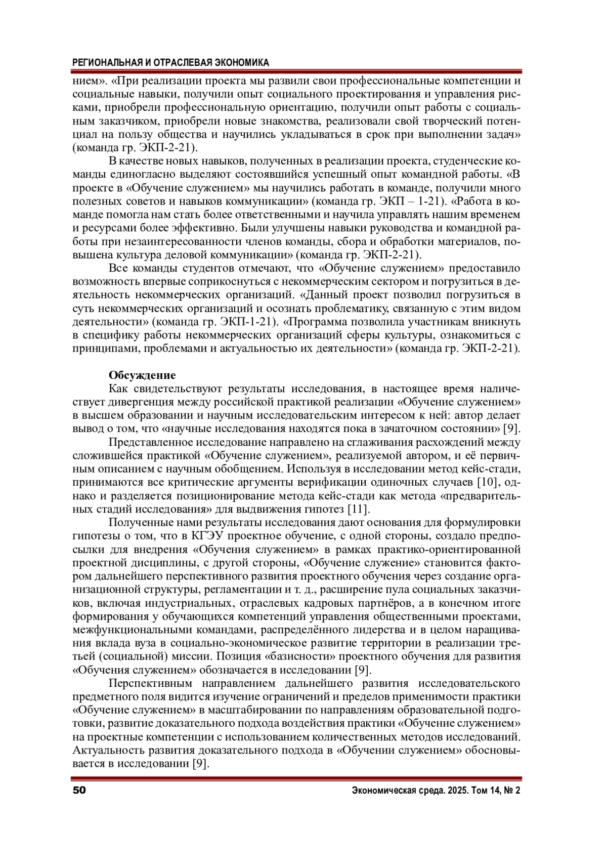 2. Никольский, В. С. Обучение или служение в российском высшем образовании: особенности начального этапа реализации нового подхода / В. С. Никольский, А. Н. Зленко // Интеграция образования. - 2024. - Т. 28, № 3(116). - С. 421-435. DOI: 10.15507/1991-9468.116.028.202403.421-435 EDN: IAFJUE