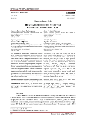 5. Иванова, И. К. Человеческий капитал и проблемы его воспроизводства / И. К. Иванова // Вектор экономики. - 2021. - № 12(66). EDN: TRTUGW