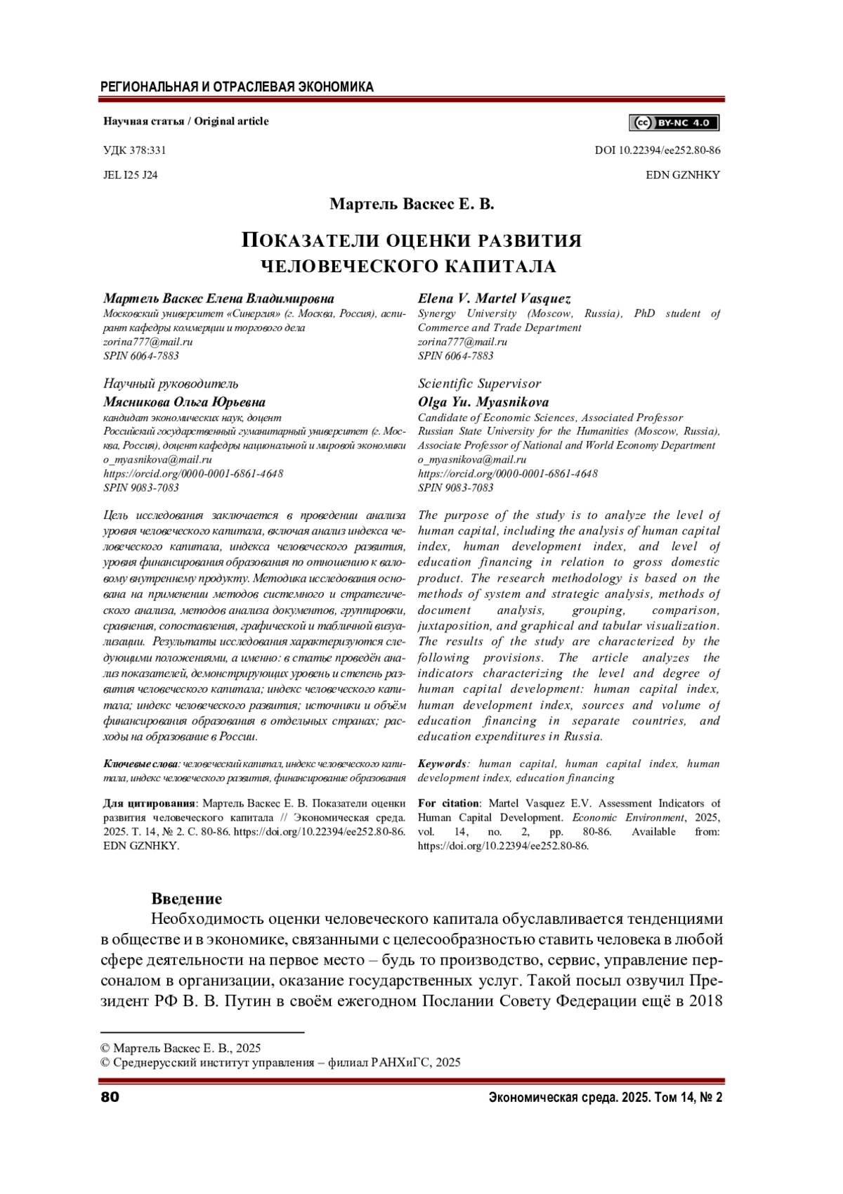 Цель исследования заключается в проведении анализа уровня человеческого капитала, включая анализ индекса человеческого капитала, индекса человеческого развития, уровня финансирования образования по отношению к валовому внутреннему продукту. Методика исследования основана на применении методов системного и стратегического анализа, методов анализа документов, группировки, сравнения, сопоставления, графической и табличной визуализации. Результаты исследования характеризуются следующими положениями, а именно: в статье проведён анализ показателей, демонстрирующих уровень и степень развития человеческого капитала; индекс человеческого капитала; индекс человеческого развития; источники и объём финансирования образования в отдельных странах; расходы на образование в России.