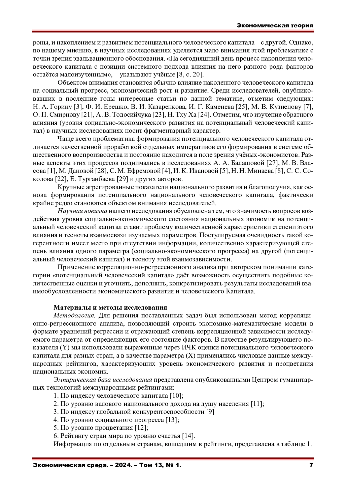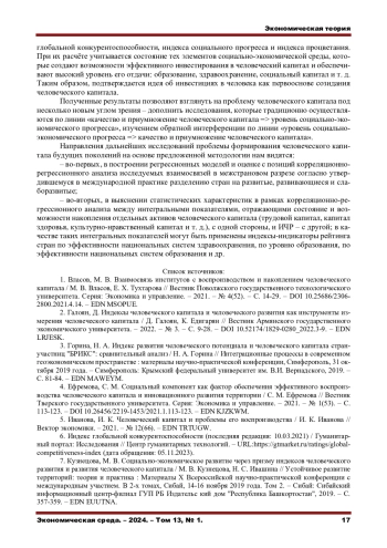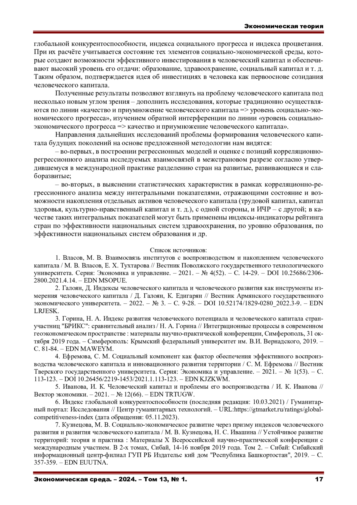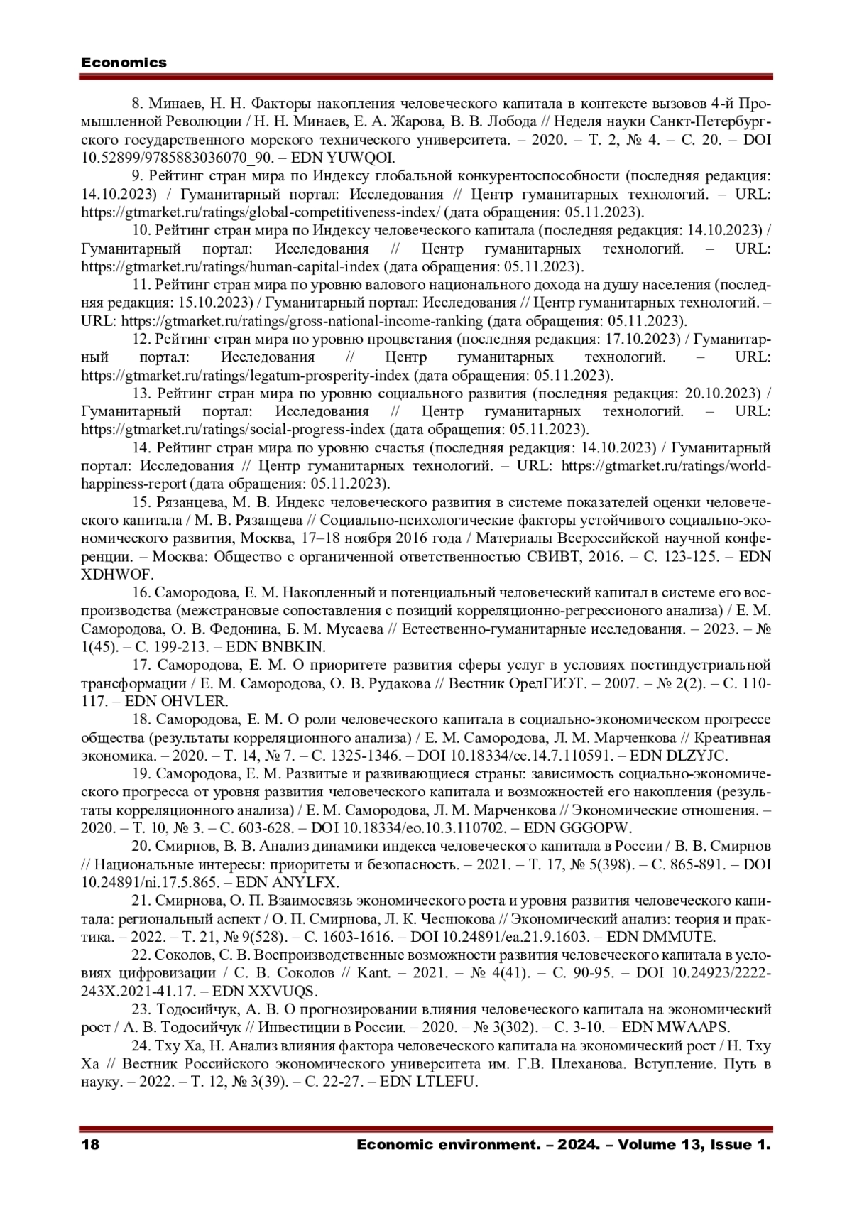 20. Смирнов, В. В. Анализ динамики индекса человеческого капитала в России / В. В. Смирнов // Национальные интересы: приоритеты и безопасность. - 2021. - Т. 17, № 5(398). - С. 865-891. DOI: 10.24891/ni.17.5.865 EDN: ANYLFX