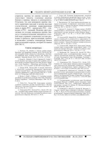 6. Огородников В.Н., Поленов Ю.А., Кисин А.Ю. Ортит - основной акцессорный минерал редкоземельных пегматитов // Вестник Уральского отделения Российского минералогического общества. 2019. № 16. С. 69-74. EDN: GLSECC
