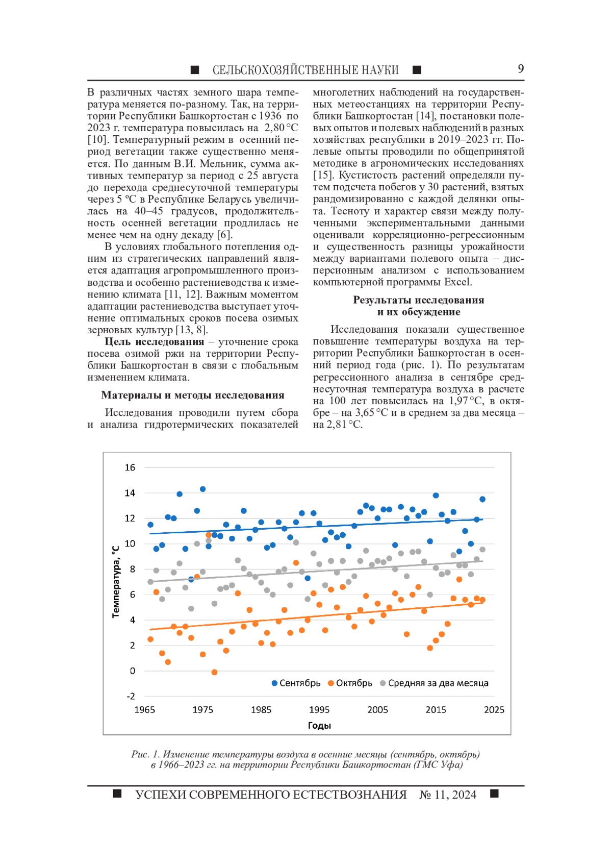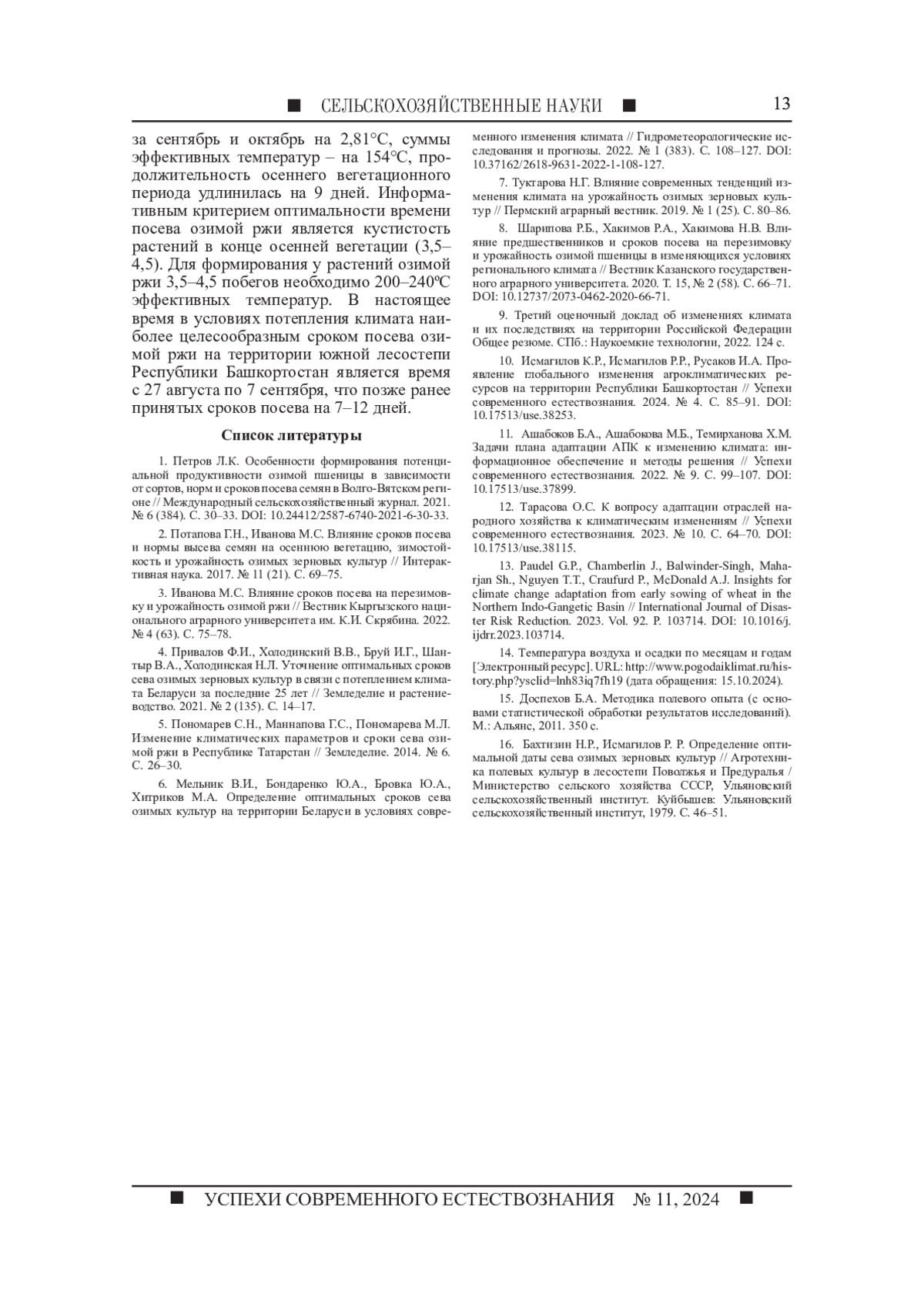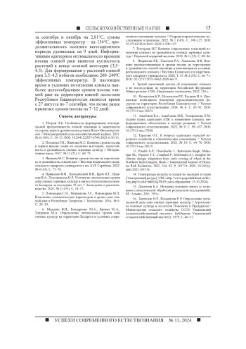 10. Исмагилов К.Р., Исмагилов Р.Р., Русаков И.А. Проявление глобального изменения агроклиматических ресурсов на территории Республики Башкортостан // Успехи современного естествознания. 2024. № 4. С. 85-91. DOI: 10.17513/use.38253 EDN: NQAYEY