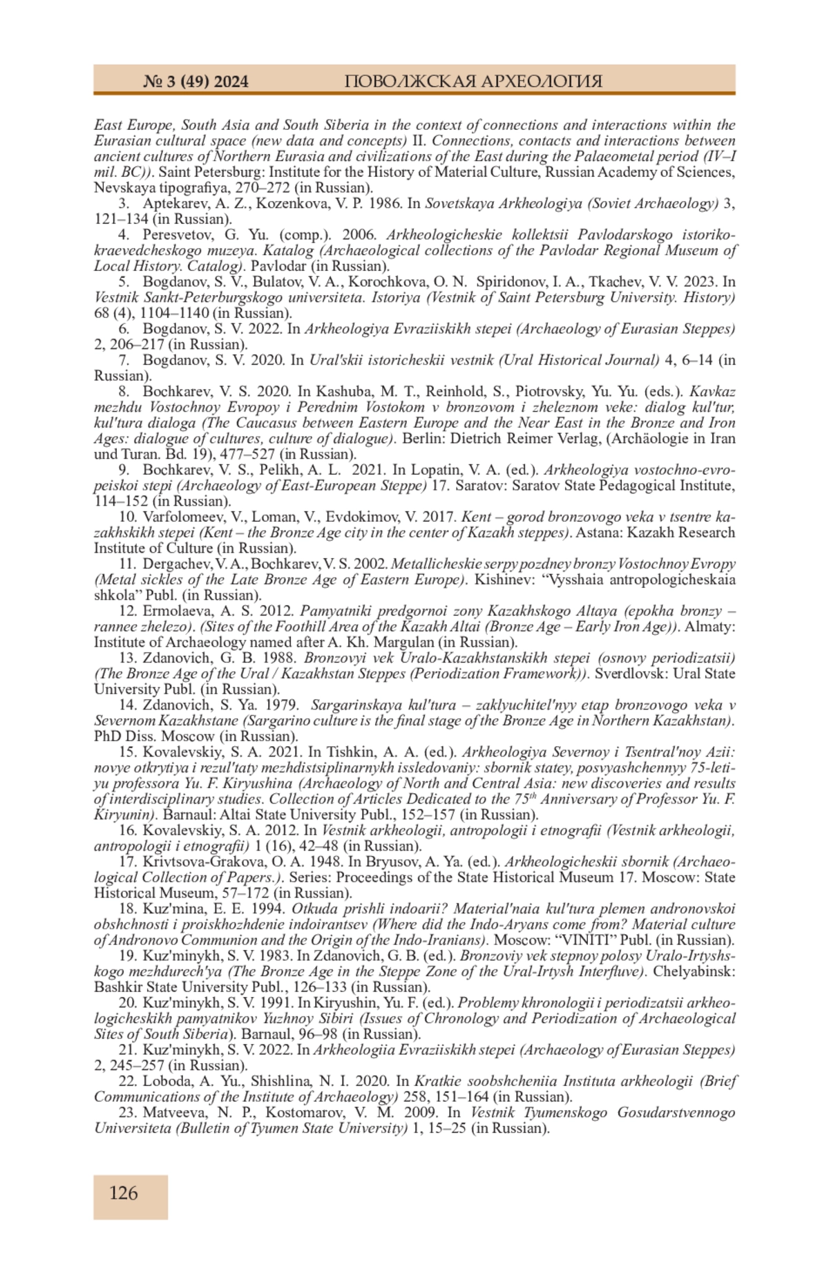 14. Зданович С.Я. Саргаринская культура - заключительный этап бронзового века в Северном Казахстане. Автореф. дисс… канд. ист. наук. М., 1979. 20 с. EDN: YPZMDB