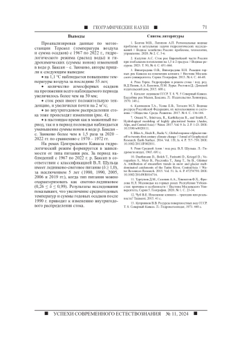3. 	Виноградова О.В., Виноградова Н.Н. Реакция горных рек Кавказа на изменения климата // Вестник Московского университета. Серия: География. 2013. № 4. С. 44-48. EDN: RDWYYJ