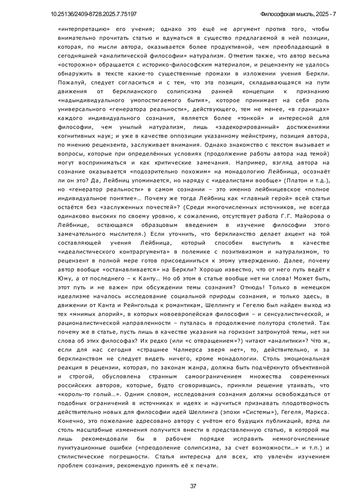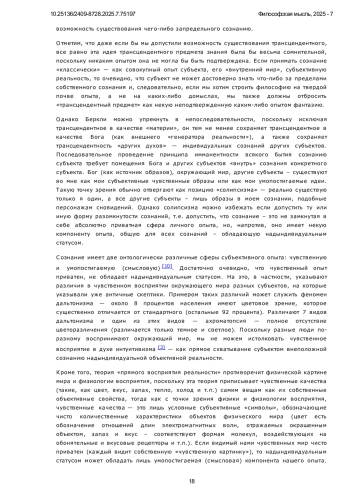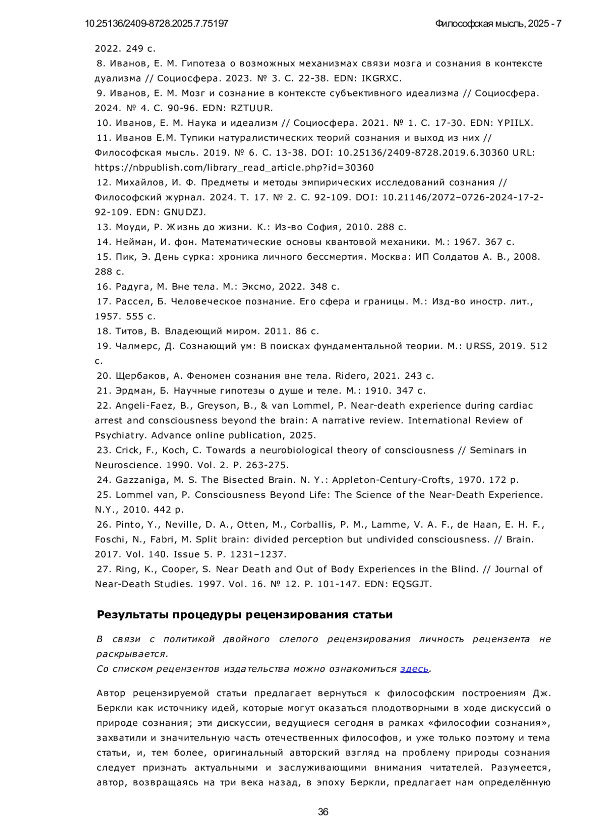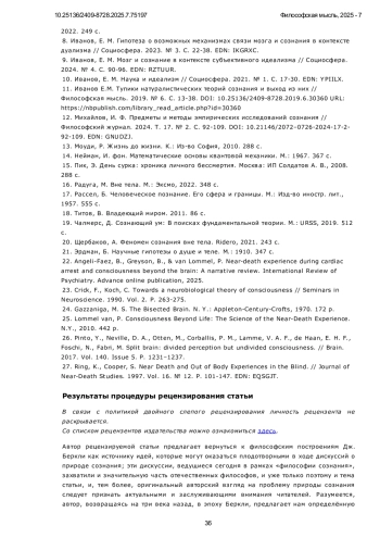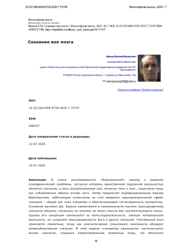 ИВАНОВ Е. М. СОЗНАНИЕ ВНЕ МОЗГА // ФИЛОСОФСКАЯ МЫСЛЬ. 2025. № 7