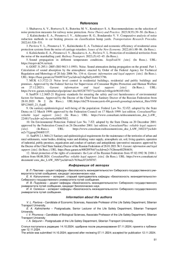 4. Защита селитебных территорий от шума сортировочной станции / Е. А. Калиниченко, И. В. Пирумова, А. А. Басалаева, В. Л. Павлова // Железнодорожный транспорт. 2022. № 5. С. 42-45. EDN: YYWRLI