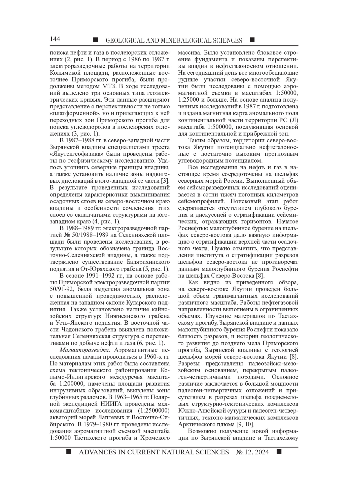 4. Аржаков Н.А., Оболкин А.П., Ситников В.С. Анализ геолого-геофизической изученности потенциально нефтегазоносных районов Северо-Восточной Якутии и прилегающего шельфа Восточно-Арктических морей // Нефтегазовая геология. Теория и практика. 2017. Т. 12, № 4. С. 11. DOI: 10.17353/2070-5379/39_2017 EDN: YVQUUJ