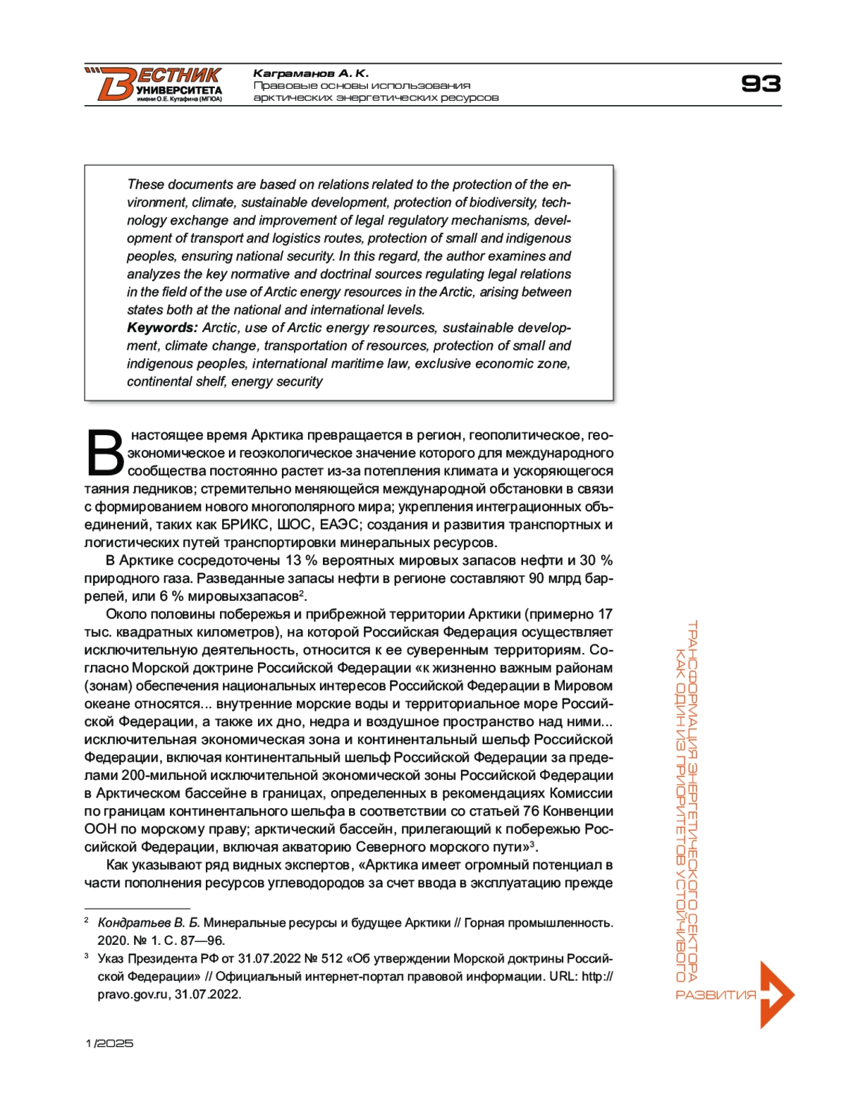 5. Капустин А. Я. От фрагментации к комплексному регулированию. Право и освоение нефтегазовых ресурсов российской Арктики и континентального шельфа // Neftegaz.ru. - 2020. - № 5.