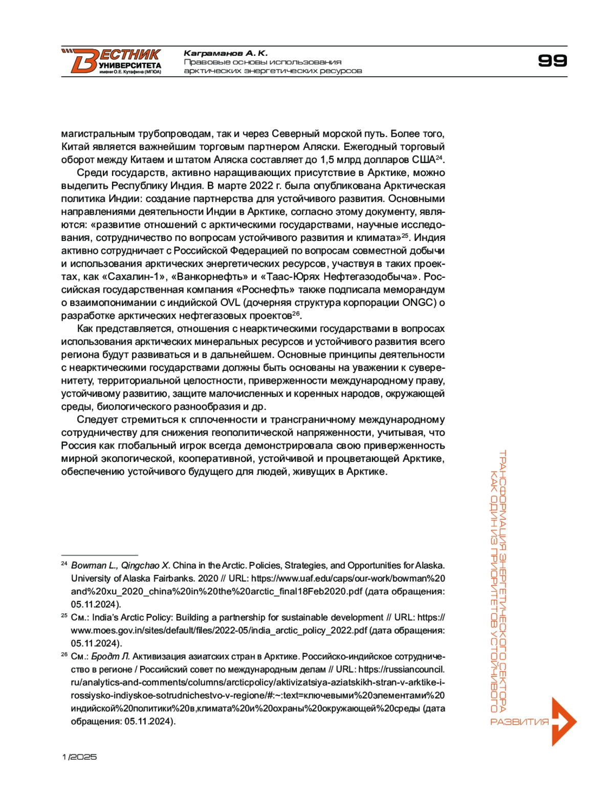 3. Бродт Л. Активизация азиатских стран в Арктике. Российско-индийское сотрудничество в регионе / Российский совет по международным делам // URL: https://russiancouncil.ru/analytics-and-comments/columns/arcticpolicy/aktivizatsiyaaziatskikh-stran-v-arktike-i-rossiysko-indiyskoe-sotrudnichestvo-v-regione #:~:text=ключевыми%20элементами%20индийской%20политики%20в,климата%20и%20охраны%20окружающей%20среды (дата обращения: 05.11.2024).