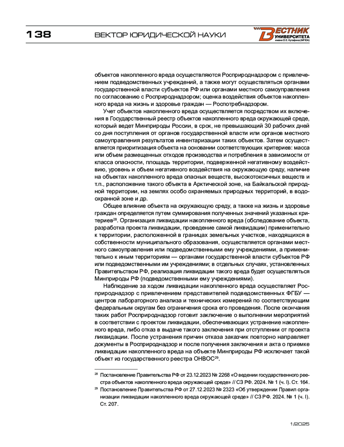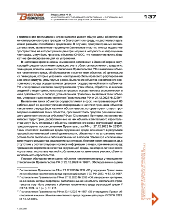 4. Гафаров Н. Р. Выявление и критерии оценки объектов накопленного вреда окружающей среде // Актуальные проблемы российского права. - 2022. - № 1. - С. 189-197.