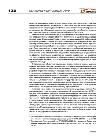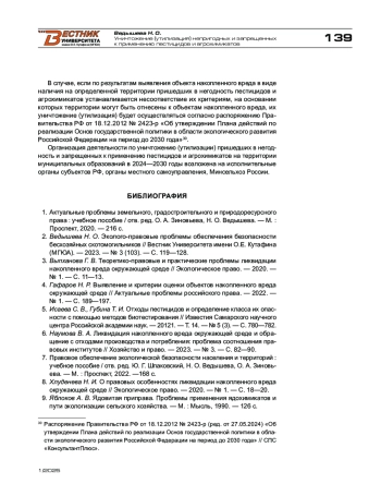 6. Наумова В. А. Ликвидация накопленного вреда окружающей среде и обращение с отходами производства и потребления: проблема соотношения правовых институтов // Хозяйство и право. - 2023. - № 3. - С. 82-90.