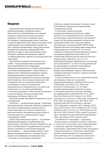 Принципиально важное значение для цивилизационного развития имеют деятельности, направленные на создание сложных объектов и систем различной природы. Особое место занимает здесь постановка, генерирование новых проблем и задач (Поддьяков, 2022). Мы рассмотрим такое направление конструирования сложности, как создание (изобретение, конструирование) междисциплинарных, межпредметных проблем и задач в образовательных целях. Термины «междисциплинарные задачи» и «межпредметные задачи» мы используем как синонимы