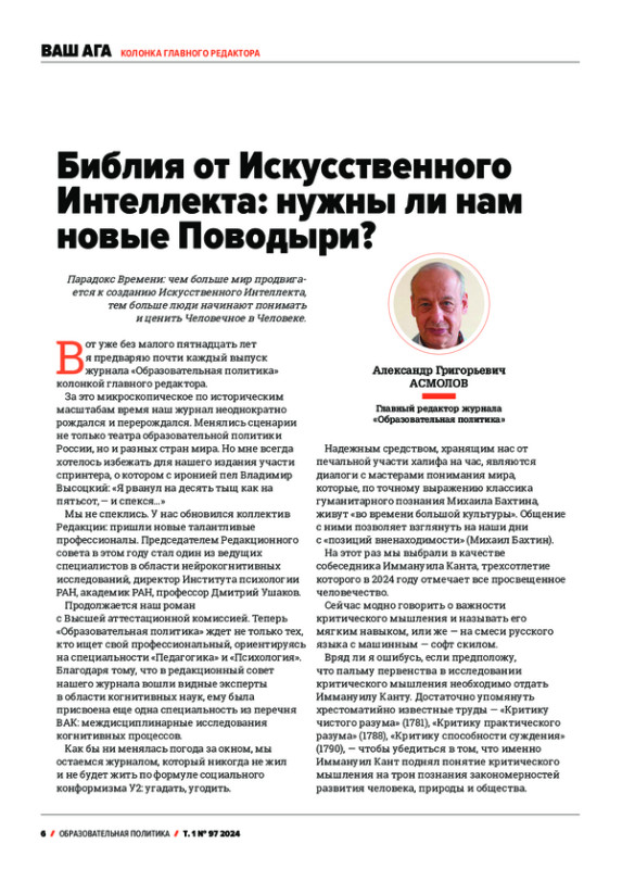 В от уже без малого пятнадцать лет я предваряю почти каждый выпуск журнала «Образовательная политика» колонкой главного редактора.